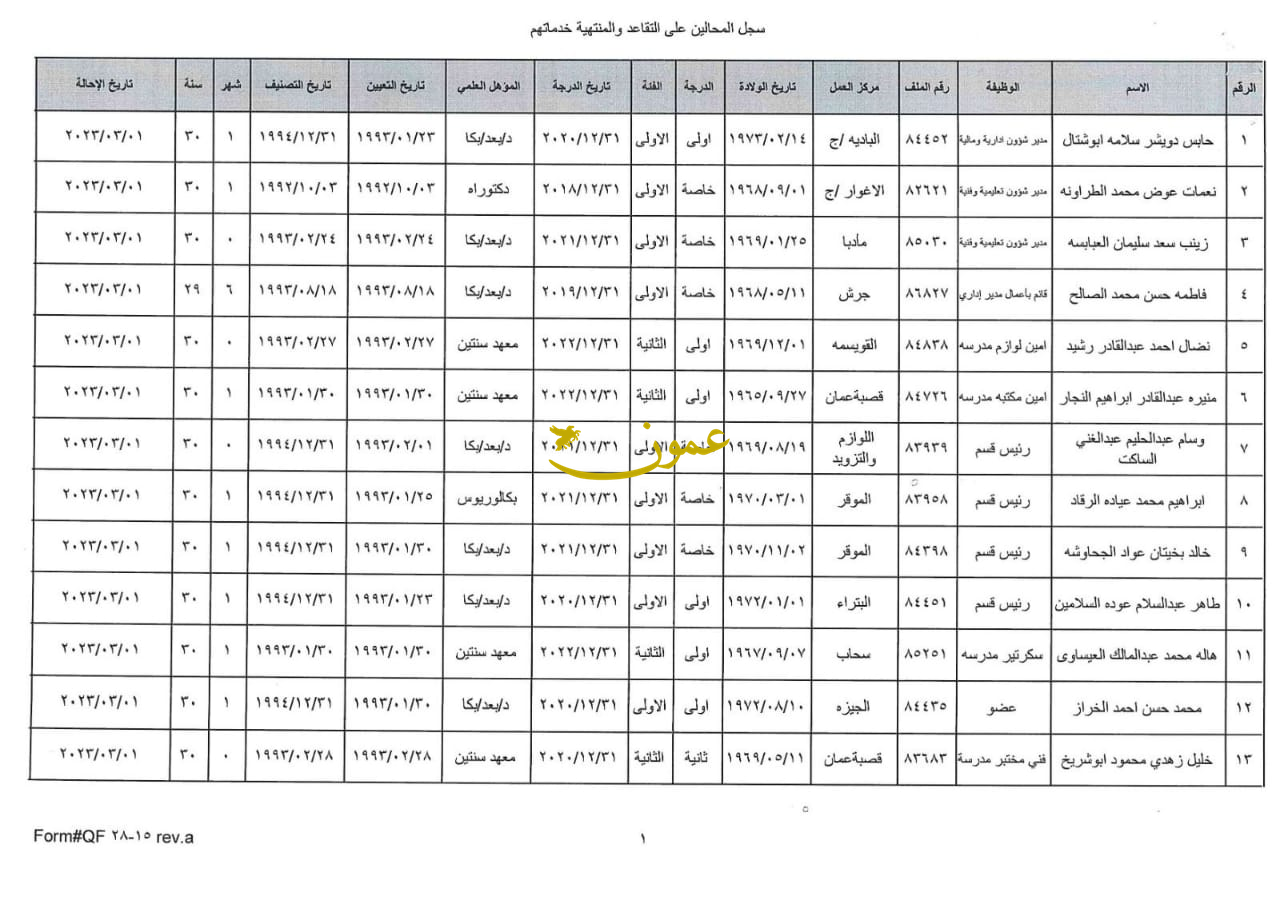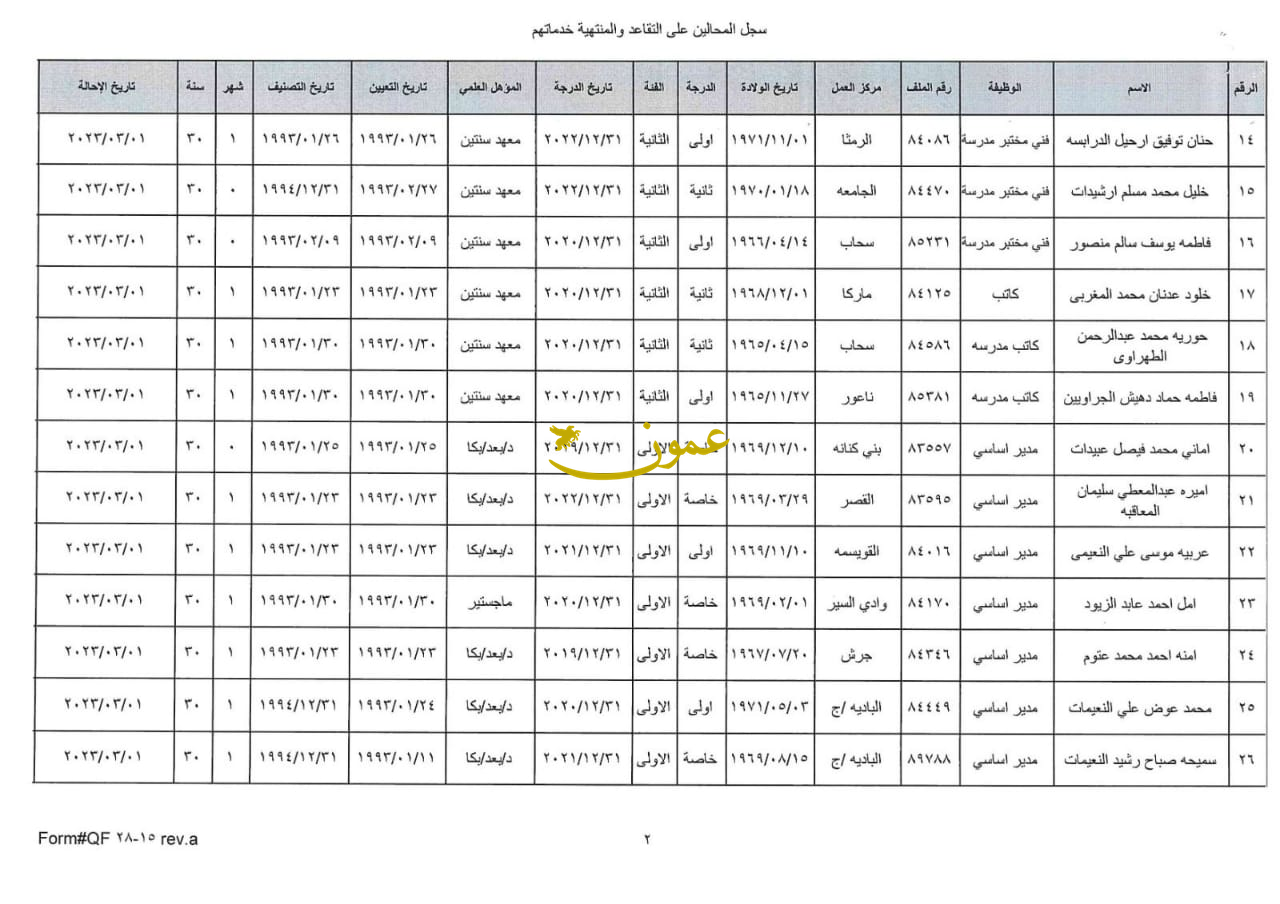 إحالات واسعة للتقاعد وإنهاء خدمات في التربية (أسماء)