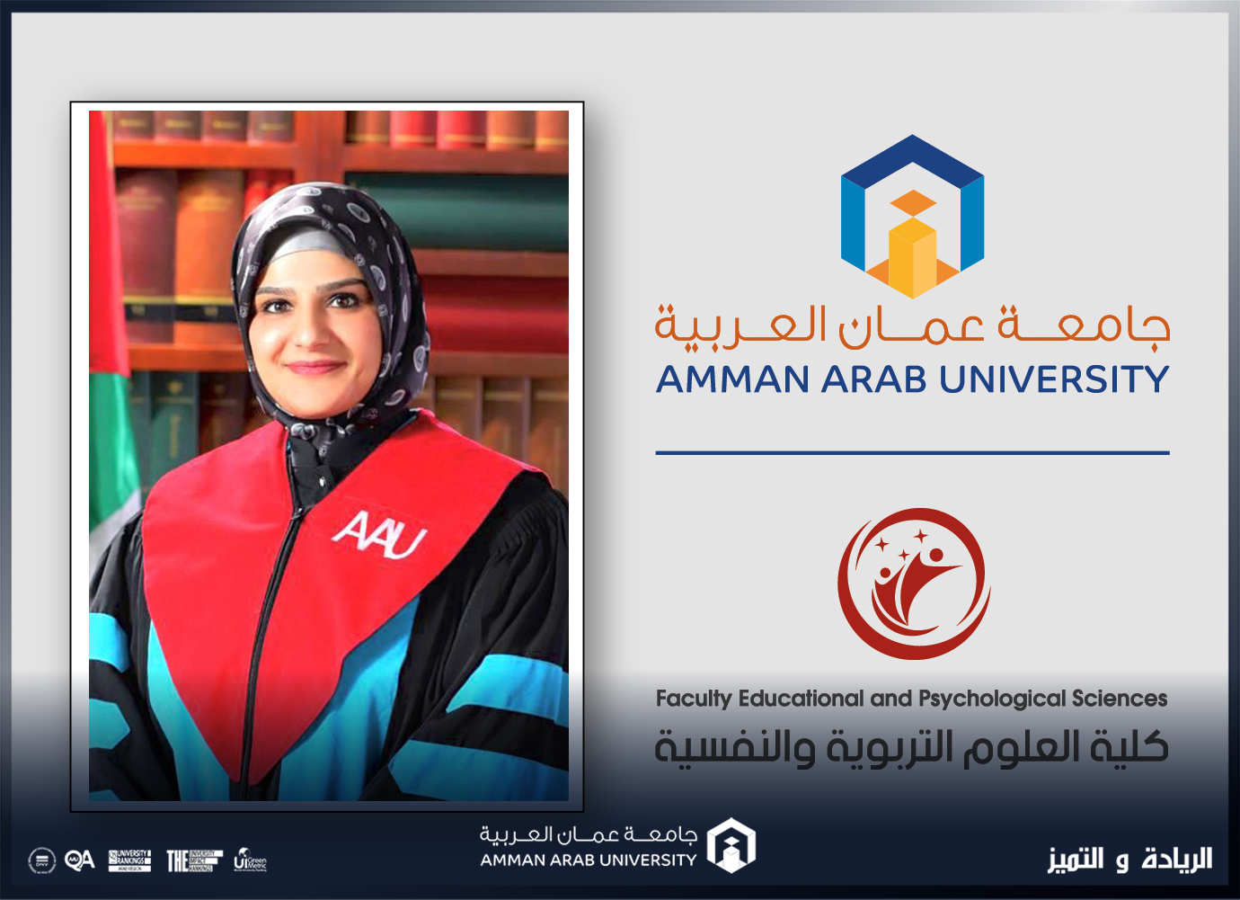 عمون – قرر مجلس عمداء جامعة عمّان العربية ترقية الدكتورة هيام موسى التاج إلى رتبة أستاذ في تخصص التربية الخاصة في كلية العلوم التربوية والنفسية . |