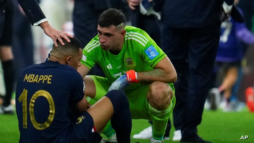 عمون - كشف حارس مرمى منتخب الأرجنتين، إيميليانو مارتينيز، أنه نصح كيليان مبابي بأن يكون فخورا بما قدم على الرغم من الهزيمة المؤلمة التي مني بها "الديوك" في المباراة النهائية في كأس العالم.