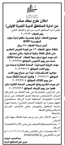 عطاء صادر عن ادارة المناطق الحرة الاردنية