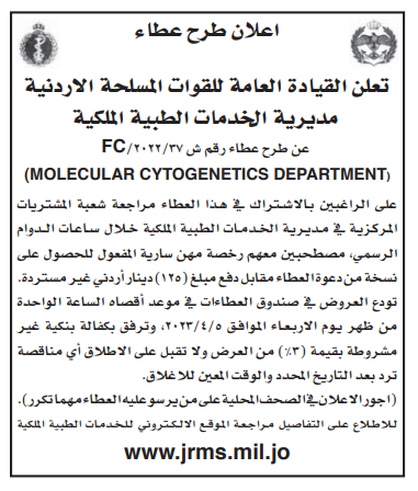 عطاء صادر عن الخدمات الطبية الملكية