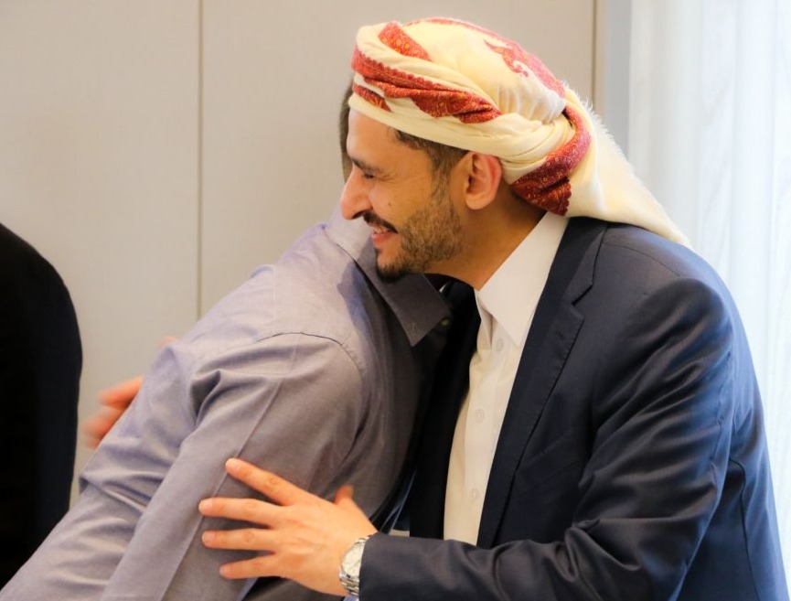 وتحدث الشيخ حميد الأحمر قائلا "إن ما أتى بنا لكم هي علاقة الأخوة الصادقة التي تربطنا بكم، والتي نعتز بها اليوم وفي المستقبل، مقدرين لكم هذه المشاعر العربية الأصيلة التي لمسناها خلال وجود الشيح صادق الأحمر -رحمه الله- في المستشفى.