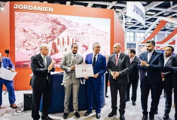 وبحسب بيان لوزارة السياحة والآثار اليوم الخميس، رعى الوزير مكرم القيسي، حفل اعلان الفائزين بالجوائز في جناح الاردن بمعرض برلين بحضور رئيس مجلس ادارة الاتحاد العربي للاعلام السياحي الدكتور سلطان اليحيائي، وعدد من وزراء السياحة والسفراء، ومحافظ جنوب سيناء المصرية اللواء خالد فودة، ومدير عام هيئة تنشيط السياحة الأردنية الدكتور عبدالرزاق عربيات، ومهتمين بقطاع السياحة.