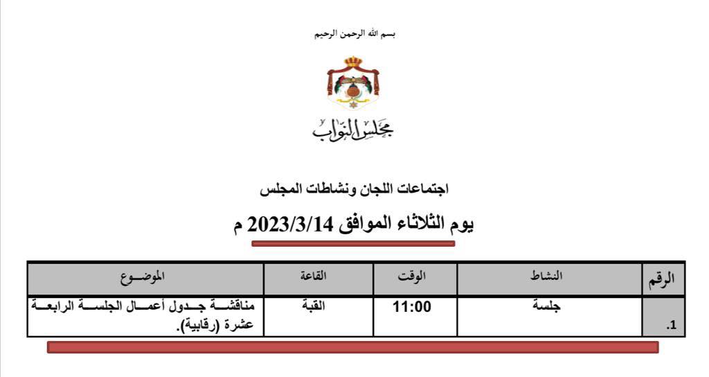 جلسة رقابية الثلاثاء للاستماع لإجابة الحكومة على 20 سؤالا نيابيا14-03-2023 07:33 AM