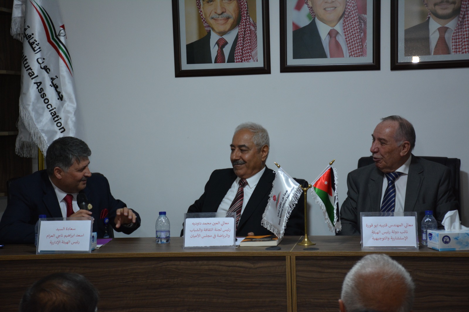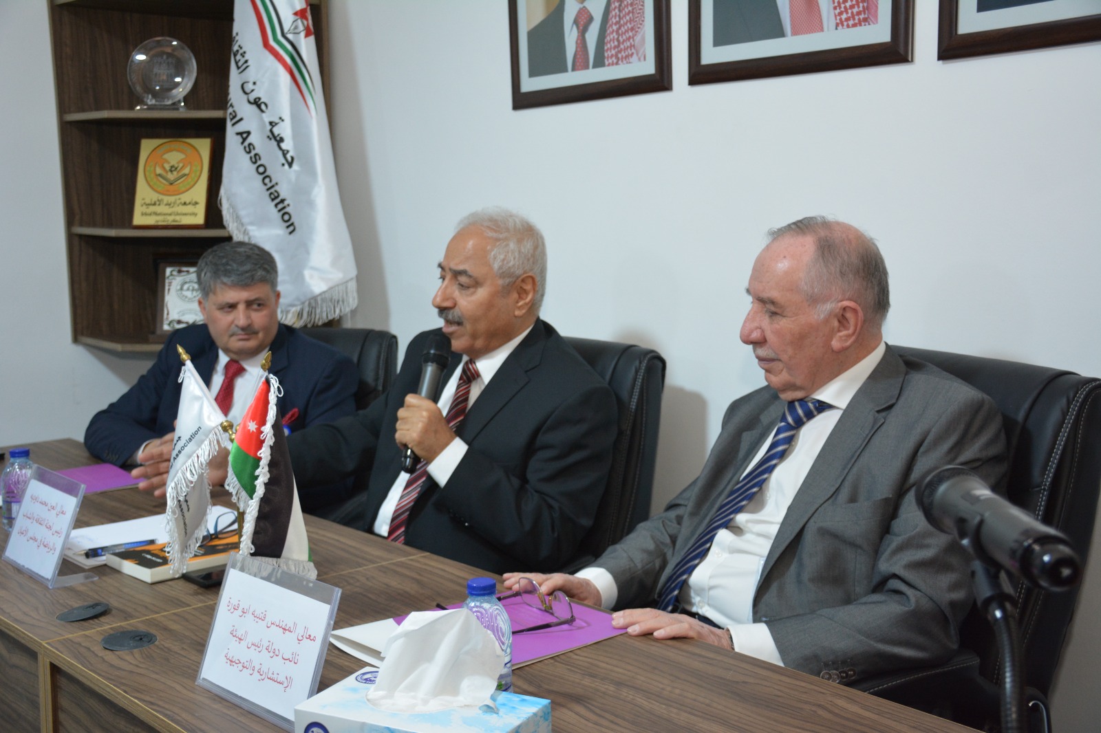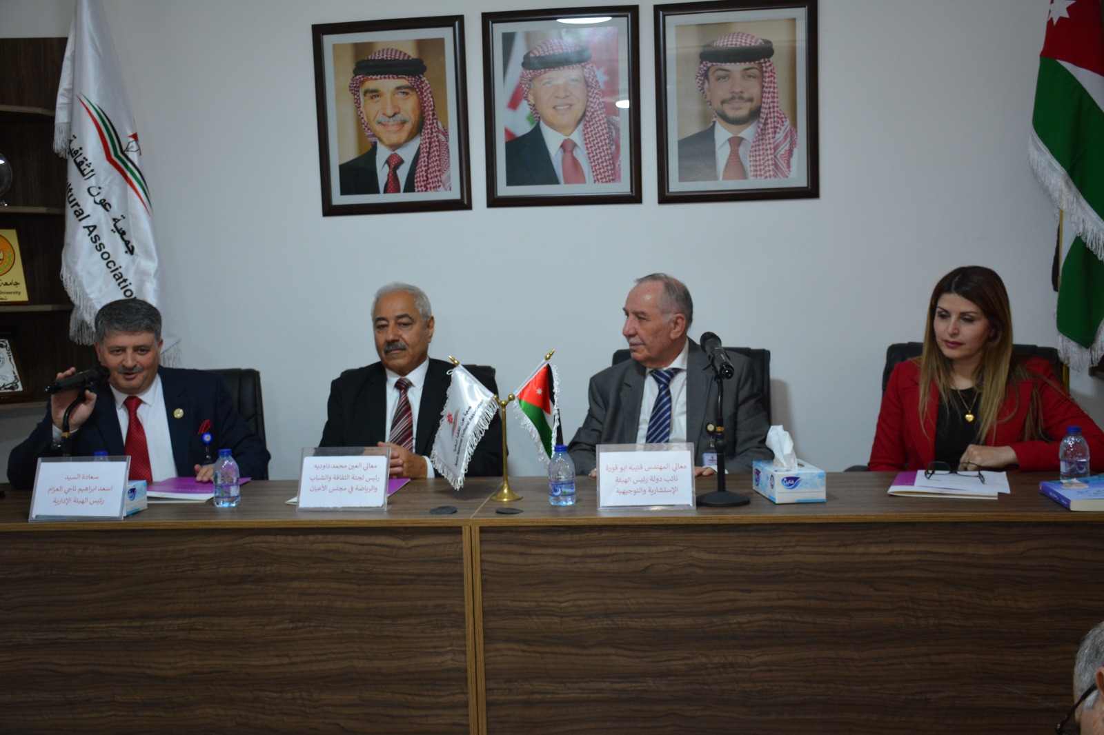 وبدوره قدم رئيس الهيئة الإدارية اسعد ابراهيم ناجي العزام الشكر والعرفان للمهندس قتيبة ابو قوره على رعايته الكريمة لهذه الندوة ورحب بالعين محمد داوديه رئيس لجنة الثقافة والشباب والرياضة في مجلس الأعيان وبالسيدات والسادة الحضور الكرام