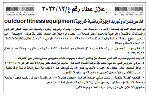 عطاء صادر عن معهد العناية بصحة الاسرة