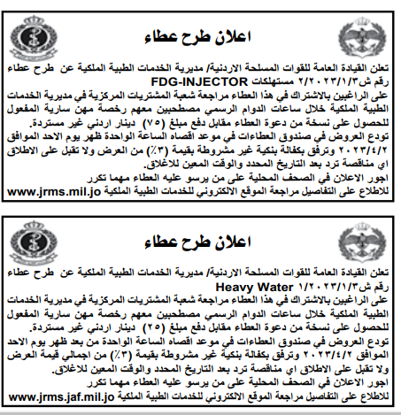 عطاءات صادرة عن الخدمات الطبية الملكية