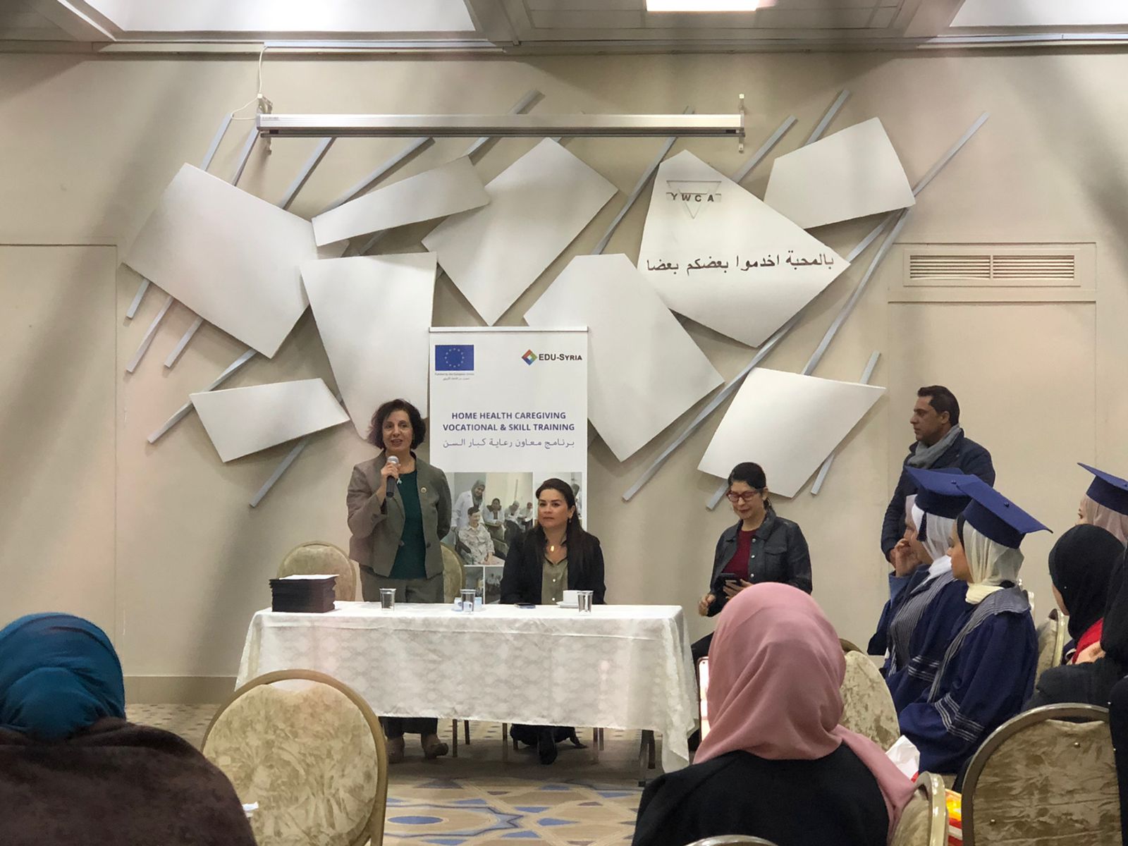 عمون - نفذ اتحاد جمعيات الشابات المسيحية في عمان برنامجاً لتدريب 20 طالبا وطالبة من الجنسيتين الأردنية والسورية على مهنة معاون رعاية كبار السن الممول من الاتحاد الأروبي EDU- SYRIA ونوفيك Nuffic والمعتمد من هيئة تنمية وتطوير المهارات.