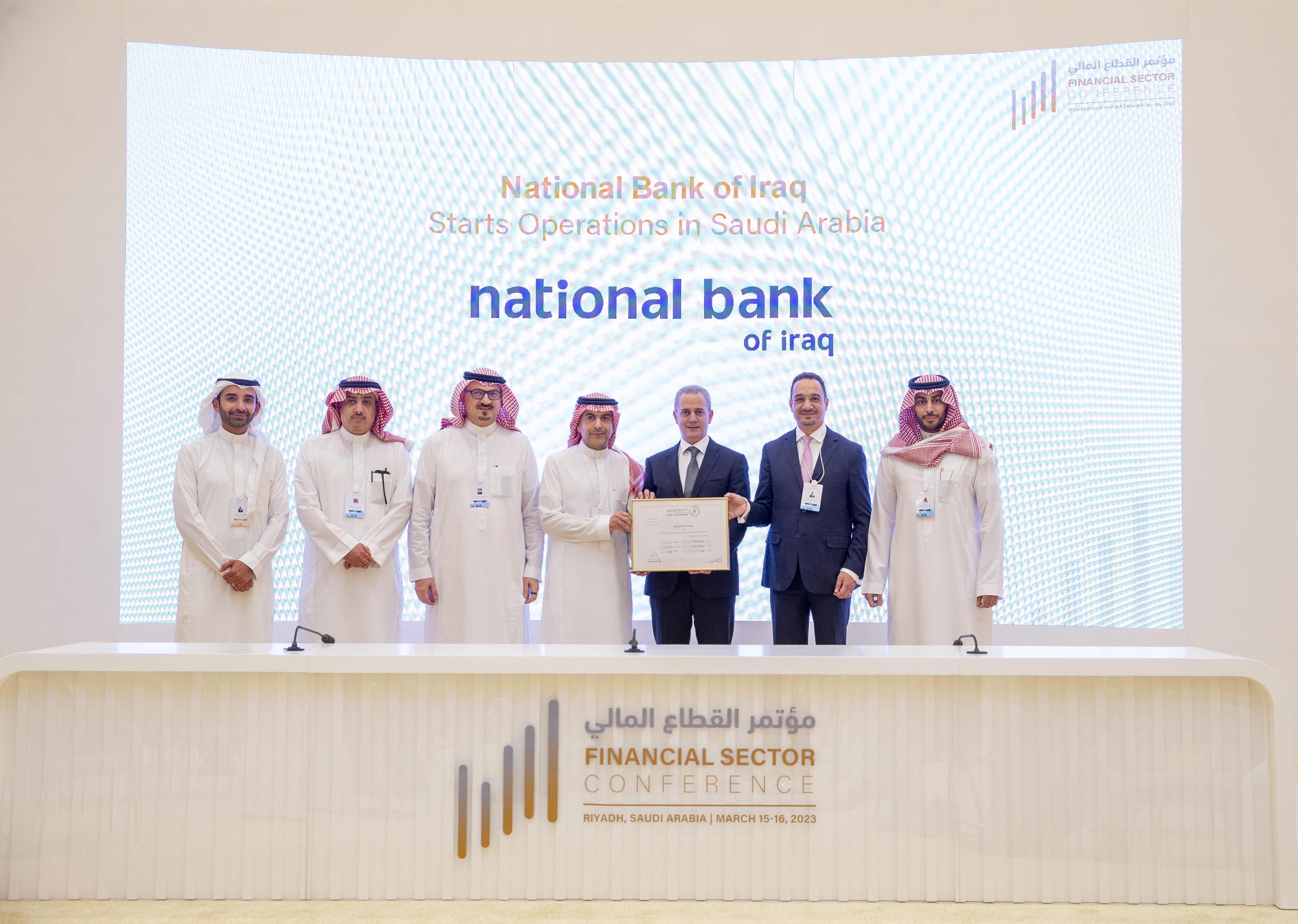 وخلال أعمال المؤتمر سلّم محافظ البنك المركزي السعودي معالي أيمن بن محمد السياري شهادة مزاولة الأعمال المصرفية للرئيس التنفيذي للمصرف الأهلي العراقي في المملكة العربية السعودية، المهندس يزيد بن عبد العزيز أبونيان، بحضور المدير المفوض للمصرف الأهلي العراقي الأستاذ أيمن أبو دهيم، ونائب الرئيس التنفيذي لمجموعة كابيتال بنك للتوسعات الدولية الأستاذ نديم قبوات، بالاضافة إلى صنّاع القرار في القطاع المالي وكبار التنفيذيين في المؤسسات المالية محلياً وإقليمياً ودولياً.
