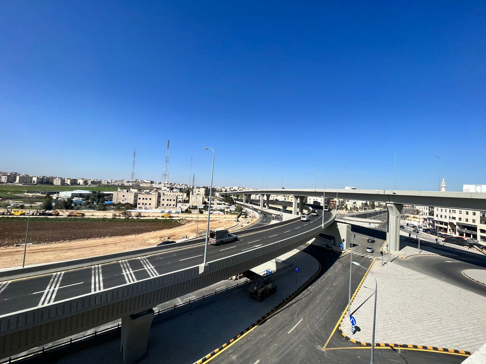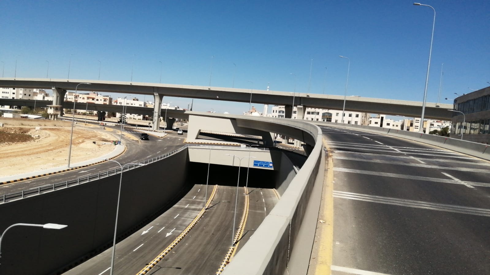 وبينت أن الأعمال في المشروع شملت انشاء تقاطع من أربع مستويات مكون من جسر خرساني بطول 650 متر للسير القادم من عمان باتجاه شارع المطار والبحر الميت على شارع القدس بالاتجاهين وجسر خرساني بطول 476 متر للسير القادم من شارع الحرية باتجاه طريق المطار ونفق بطول 130 متر ضمن اربع مسارب وفي كلا الاتجاهين وطرق رئيسية وجدران خرسانية ساندة للممر السفلي وإعادة تأهيل الطرق المحيطة بالإضافة الى انشاء الأرصفة وأنظمة تصريف مياه الامطار واعمال الانارة وكافة اعمال السلامة العامة وفق اعلى المعايير المتبعة عالمياً.