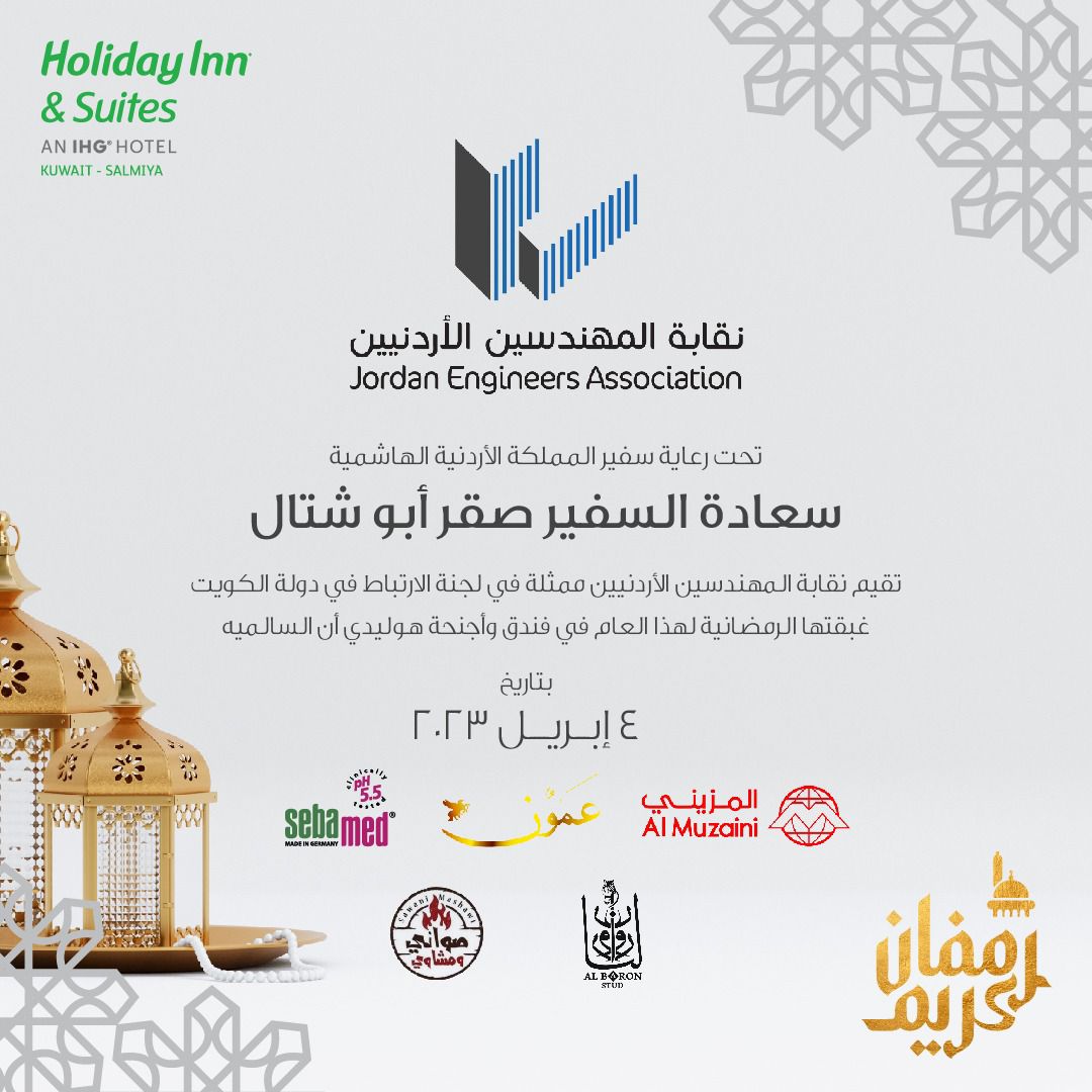 عمون - تنظم نقابة المهندسين الأردنيين ممثلة في لجنة الارتباط في دولة الكويت، غبقتها الرمضانية لهذا العام بتاريخ 4 نيسان/ابريل 2023، وذلك برعاية سفير المملكة الأردنية الهاشمية السفير صقر أبو شتال، وبحضور ضيوف النقابة من جمعية المهندسين الكويتية. |