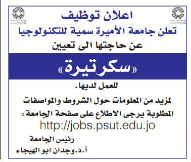 مطلوب سكرتيرة للعمل لدى جامعة الاميرة سميه