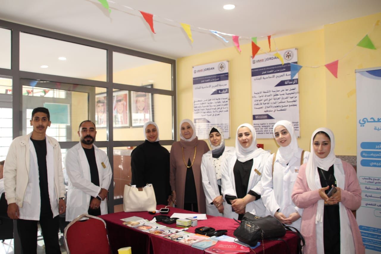 عمون - مندوبًا عن مدير صحة محافظة إربد الدكتور شادي بني هاني، رعى الدكتور محمد أبو زيد، اليوم الطبي المجاني الذي أقامته كلية التمريض في جامعة إربد الأهلية في مدرسة الصريح الأساسية للبنات/ بلدة الصريح/ إربد، بمناسبة احتفالات المملكة بذكرى معركة الكرامة، وعيد الأم، وقرب حلول شهر رمضان المبارك، بحضور الأستاذ الدكتور أيمن الأحمد نائب رئيس جامعة إربد الأهلية، والدكتور صامد درواشة مستشار الرئيس، والأستاذة الدكتورة مريم الكوافحة عميدة كلية التمريض، والسيدة فاطمة السعدي رئيسة لجنة صحة مجتمع الصريح، والدكتور زهير الرباعي مدير مديرية تربية لواء بني عبيد، والسيدة رانيا النعسان/ مديرة مدرسة الصريح الأساسية للبنات، والدكتور طارق النابلسي مدير مركز صحي الصريح الشامل، والدكتورة دعاء الطاهات رئيسة بنك الدم المركزي، والسيد طارق الشياب مدير مركز شباب الصريح، وبمشاركة كل من الجهات التالية: مستشفى ابن النفيس، ومختبرات نانو الطبية، والشركة المتحدة للأدوية، والشركة الدولية للأدوية، ودار الشامي للعيون، ودار الحكمة للدواء، والشركة الأردنية السويدية، وعدد من الأطباء والصيادلة وأهالي المنطقة، وعدد من أعضاء الهيئة التدريسية في الكلية.