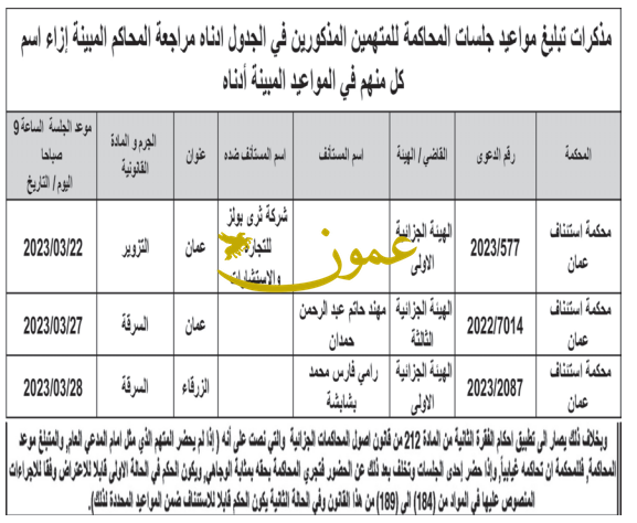 وفي مذكرات أخرى، طالبت محاكم متهمين مراجعة المحاكم المبينة إزاء اسم كل منهم في المواعيد المبينة.