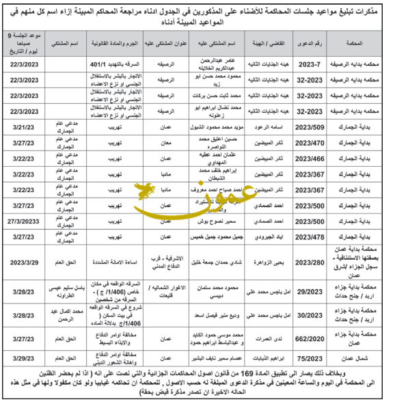 ونشرت المحاكم، أسماء المتهمين، عملا بأحكام المادة 243 من قانون أصول المحاكمات الجزائية.