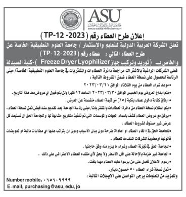 عطاءات صادرة عن جامعة العلوم التطبيقية