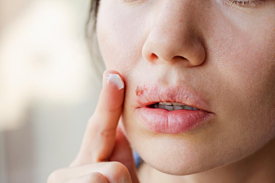 امرأة مصابة بتقرحات الفم الناتجة عن مرض بهجت