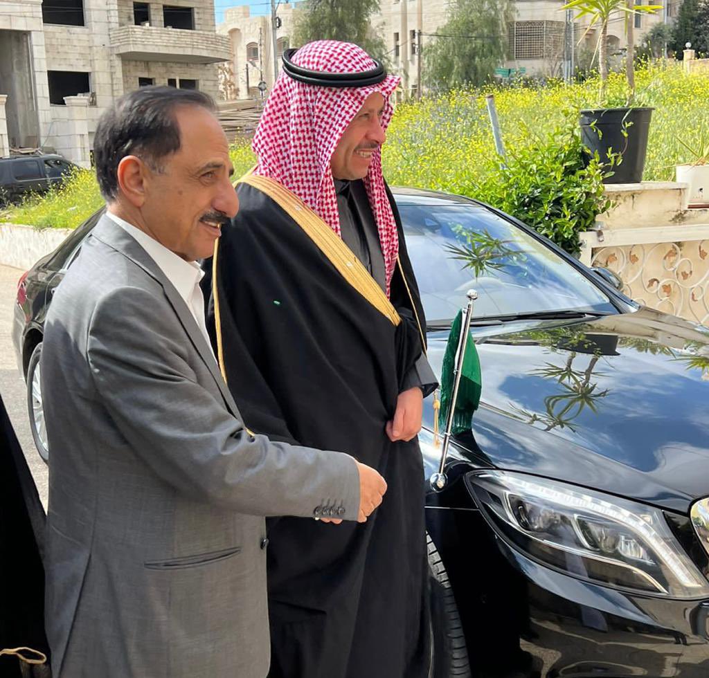 عمون - لبى السفير السعودي في الأردن نايف بن بندر السديري اليوم دعوة الغداء التي أقامها على شرفه الشيخ سامح جمال المجالي.