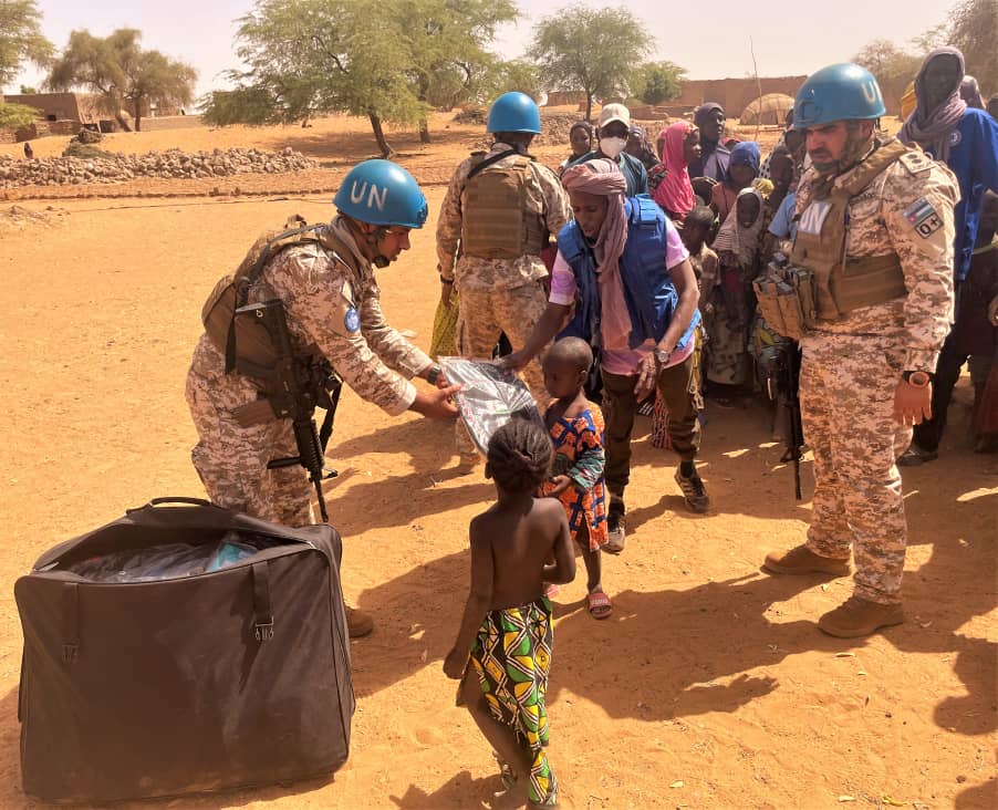 وبهذه المناسبات الوطنية، وزعت قوة الانتشار السريع مالي 3، مساعدات إنسانية وطبية للسكان المحليين، اشتملت على حقائب مدرسية ولوازم قرطاسية وأدوية تسهم في التخفيف من معاناة الشعب المالي.