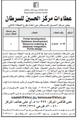 عطاء صادر عن مركز الحسين للسرطان