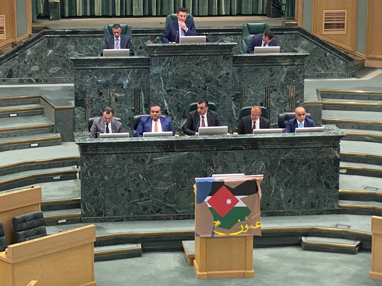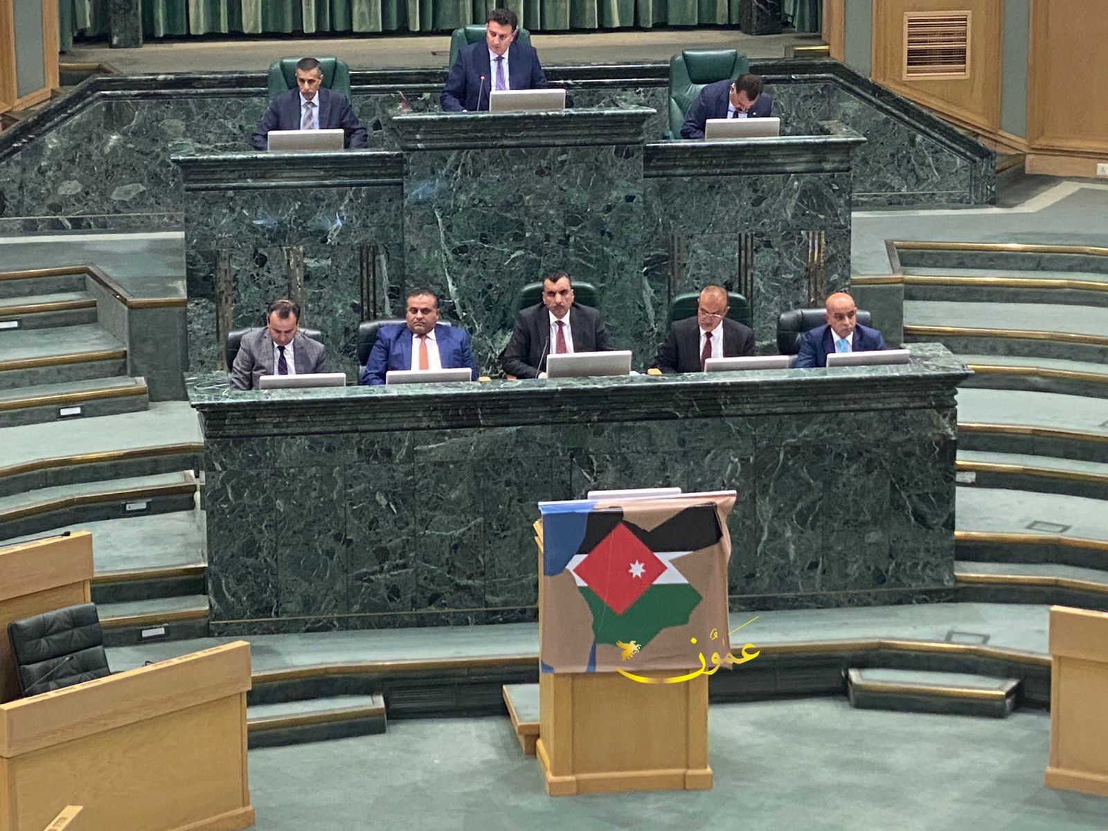 عمون - رد مجلس النواب الأردني على خريطة وزير مالية الاحتلال الاسرائيلي سموتريتش "اسرائيل العظمى" بخريطتي الأردن وفلسطين تحملان علمي الأردن وفلسطين.