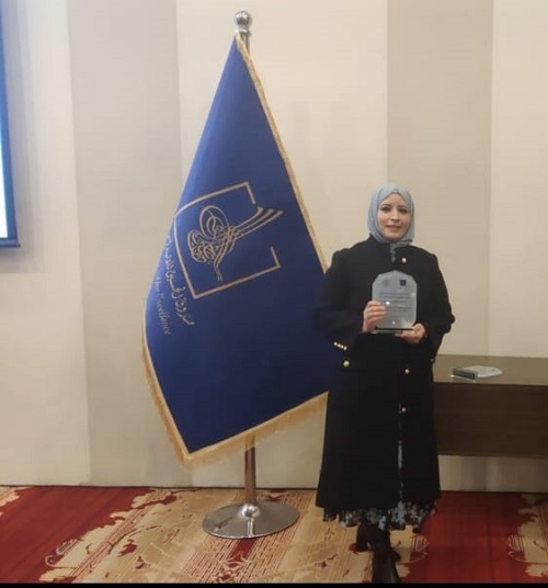 عمون - كرم محافظ البنك المركزي الأردني الدكتور عادل الشركس المدرسة الاء الخطيب من قسم العلوم المالية والمصرفية - كلية الاعمال في جامعة الزيتونة الاردنية بحصولها على جائزة الحسين للإبداع والتفوق للعام 2022 في مجال النمو الاقتصادي بعنوان "العوامل الدافعة لتكامل السوق العالمية حالة الصناعات الأردنية" بالشراكة في البحث مع الدكتور سعيد الخطيب. |
