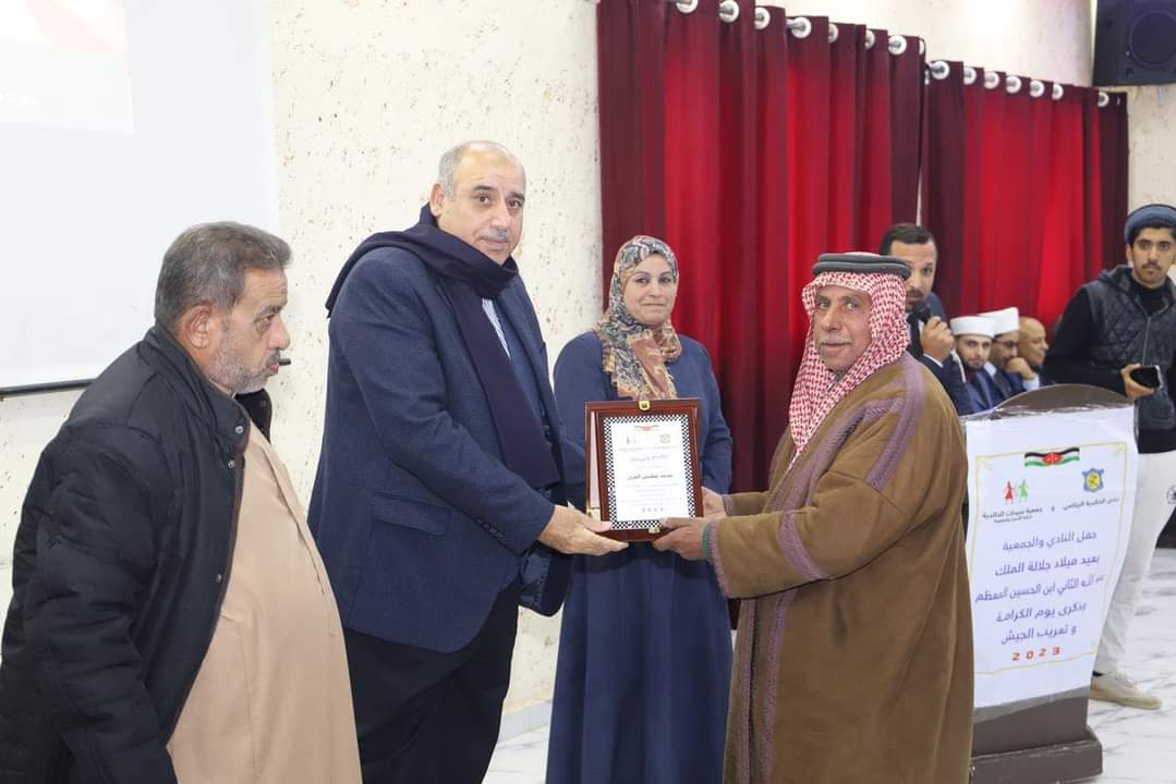 عمون - رعى وزير الداخلية الأسبق مازن تركي سعود القاضي حفل نادي الخالدية الرياضي بالتعاون مع جمعية سيدات الخالدية لرعاية الأسرة والطفولة بمناسبة ذكرى معركة الكرامة وتعريب الجيش. |