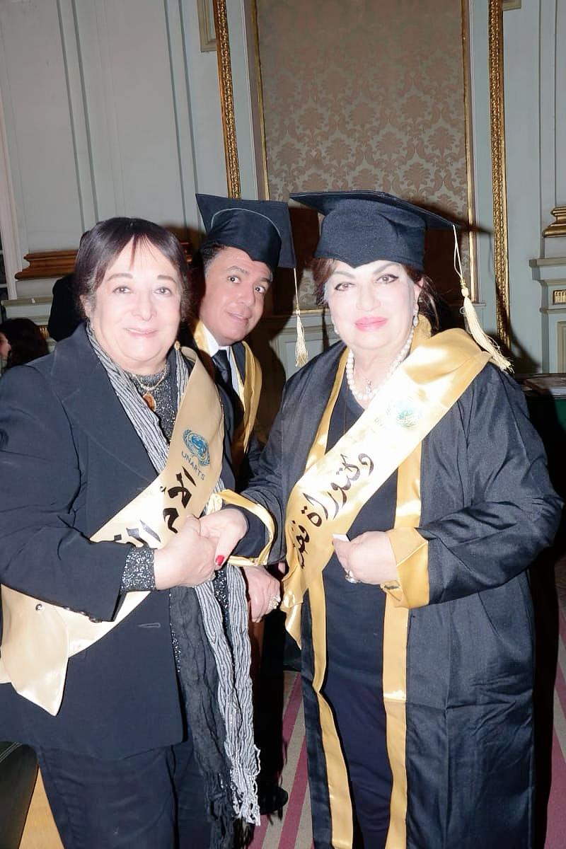 -أرملة الشيخ طالب السهيل تحصل على الدكتوراة من الأمم المتحدة للفنون.