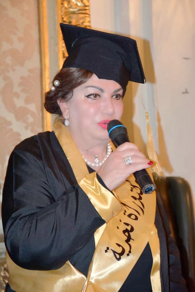 عمون - حصلت الشيخة / منيرڤا بدرالدين أرملة المرحوم الشيخ الشهيد / طالب السهيل أمير قبيلة بني تميم على الدكتوراة الفخرية من منظمة الأمم المتحدة للفنون برئاسة الدكتور نبيل رزق في احتفالية في القاهرة .
