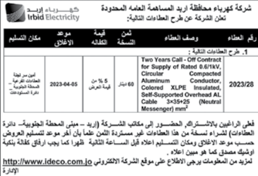 عطاء صادر عن كهرباء اربد