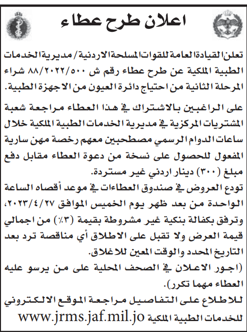 عطاء صادر عن شركة الخدمات الطبية الملكية