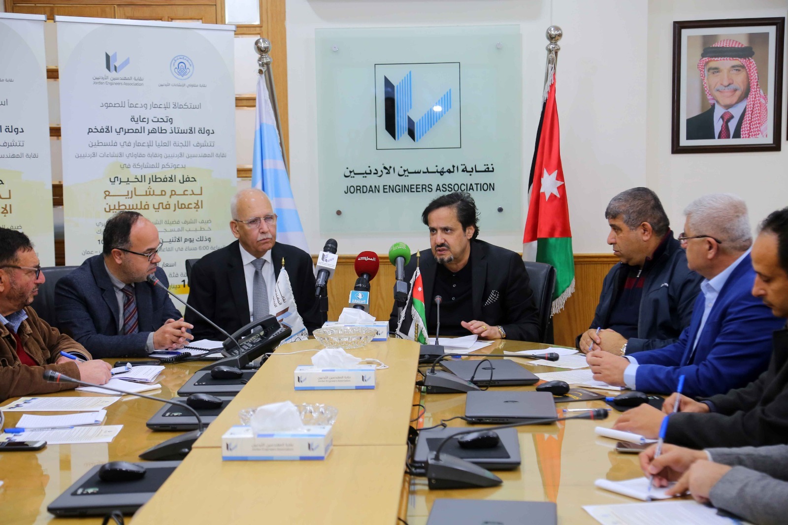 تقيم اللجنة العليا للإعمار في فلسطين، ونقابة المهندسين الأردنيين ونقابة المقاولين حفل افطار خيري لدعم مشاريع الإعمار في فلسطين، تحت رعاية دولة رئيس الوزراء الأسبق السيد طاهر المصري، يوم الاثنين 10 نيسان الجاري بمطعم جبري المركزي في عمان.