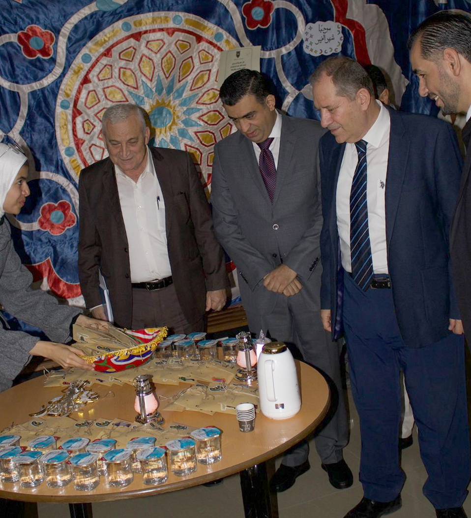 عمون - افتتح رئيس الجامعة الأردنية فرع العقبة الأستاذ الدكتور غالب عباسي الخيمة الرمضانية التي أقامتها في الحرم الجامعي دائرة الشؤون والخدمات الطلابية بالتعاون مع طلبة الجامعة بهدف توفير المواد الاستهلاكية لموظفي الجامعة ولطلبتها بأسعار معقولة إضافة إلى توفير سوق لعرض المنتوجات المختلفة في حرم الجامعة للجمعيات ولأصحاب المشاريع اليدوية والمنزلية الصغيرة. |