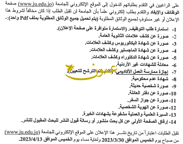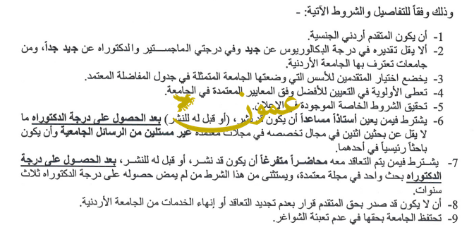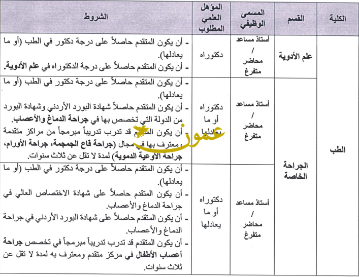 الأردنية عن حاجتها لتعيين أعضاء هيئة تدريس (تفاصيل)