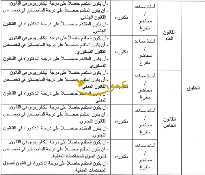 عمون - أعلنت الجامعة الأردنية عن حاجتها إلى تعيين أعضاء هيئة تدريس، والتعاقد مع محاضرين متفرغين من حملة الدكتوراة أو الماجستير.