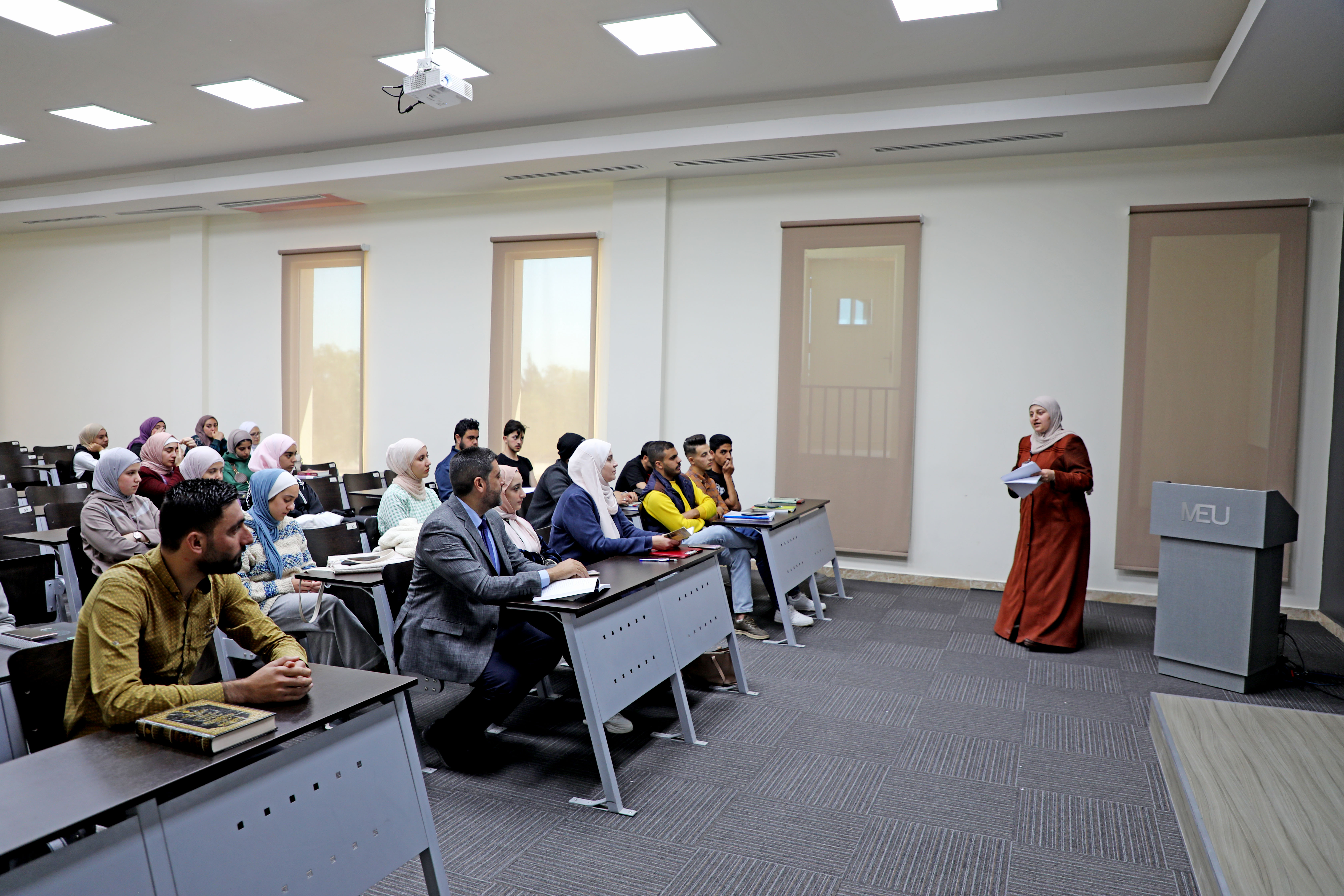 عمون - نظم النادي الثقافي في عمادة شؤون الطلبة بجامعة الشرق الأوسط، جلسة نقاشيّة لكتاب (الأربعين النوويّة)، أدارتها عضو هيئة التدريس في كلية الآداب والعلوم التربوية، ومستشارة النادي الثقافي الدكتورة جمانة السّالم. |