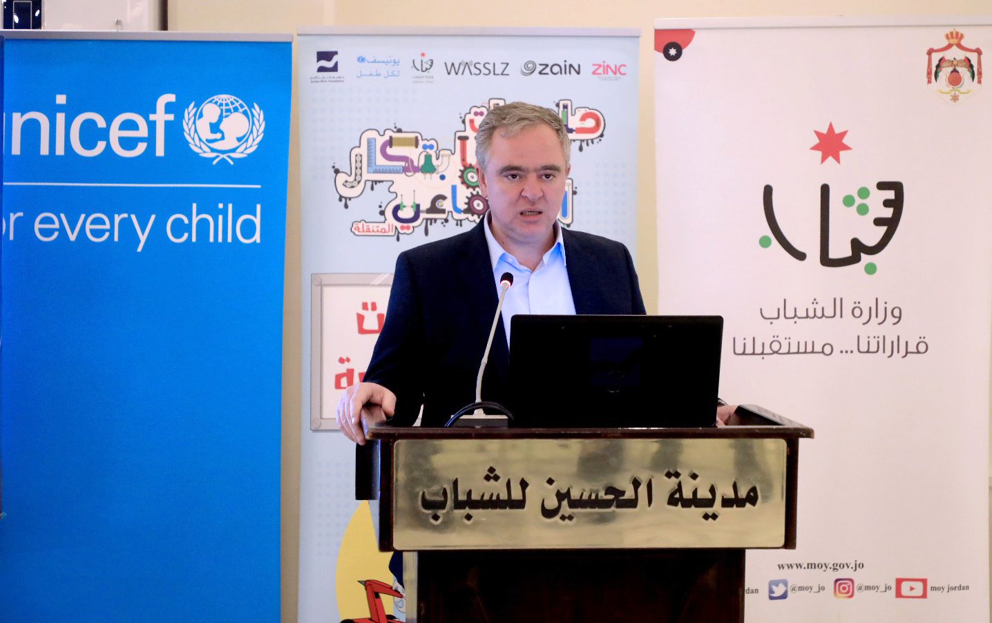 عمون - شارك وزير الشباب محمد النابلسي، الثلاثاء، حفل ختام "البطولة الوطنية لبناء وبرمجة روبوت السومو"، التي تنفذه الوزارة بالتعاون مع مؤسسة نهر الأردن ومنصة زين للإبداع وشركة وصلز، وبالشراكة مع "اليونيسف"، ضمن مشروع حاضنات الابتكار الاجتماعي.