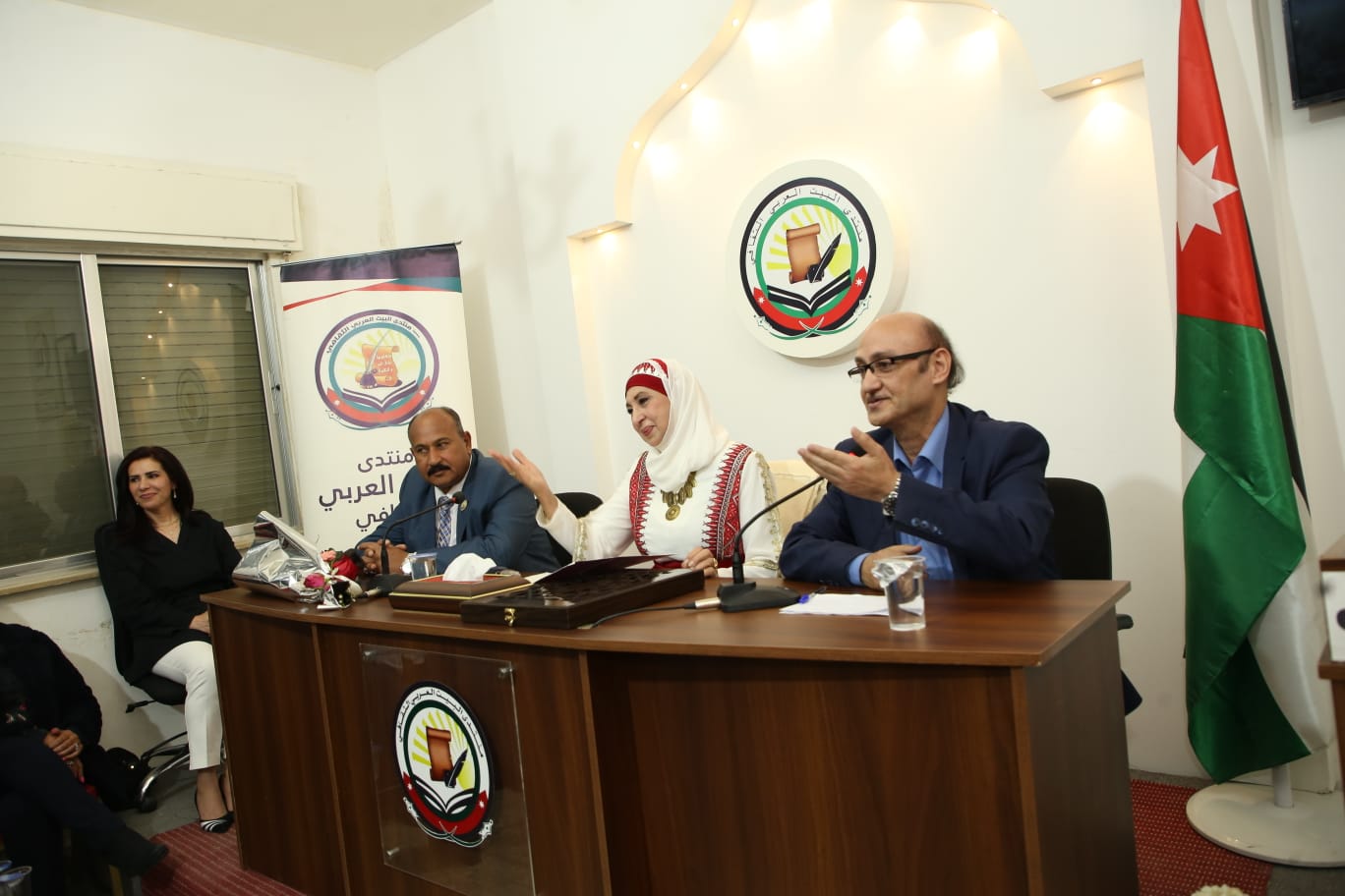 كما تحدث أيضا د. عادل الطويسي والأديب هزاع البراري، وألقت مديرة البرامج وأمينة سر المنتدى ميرنا حتقوة كلمة الفنان حسن أبو شعيرة.