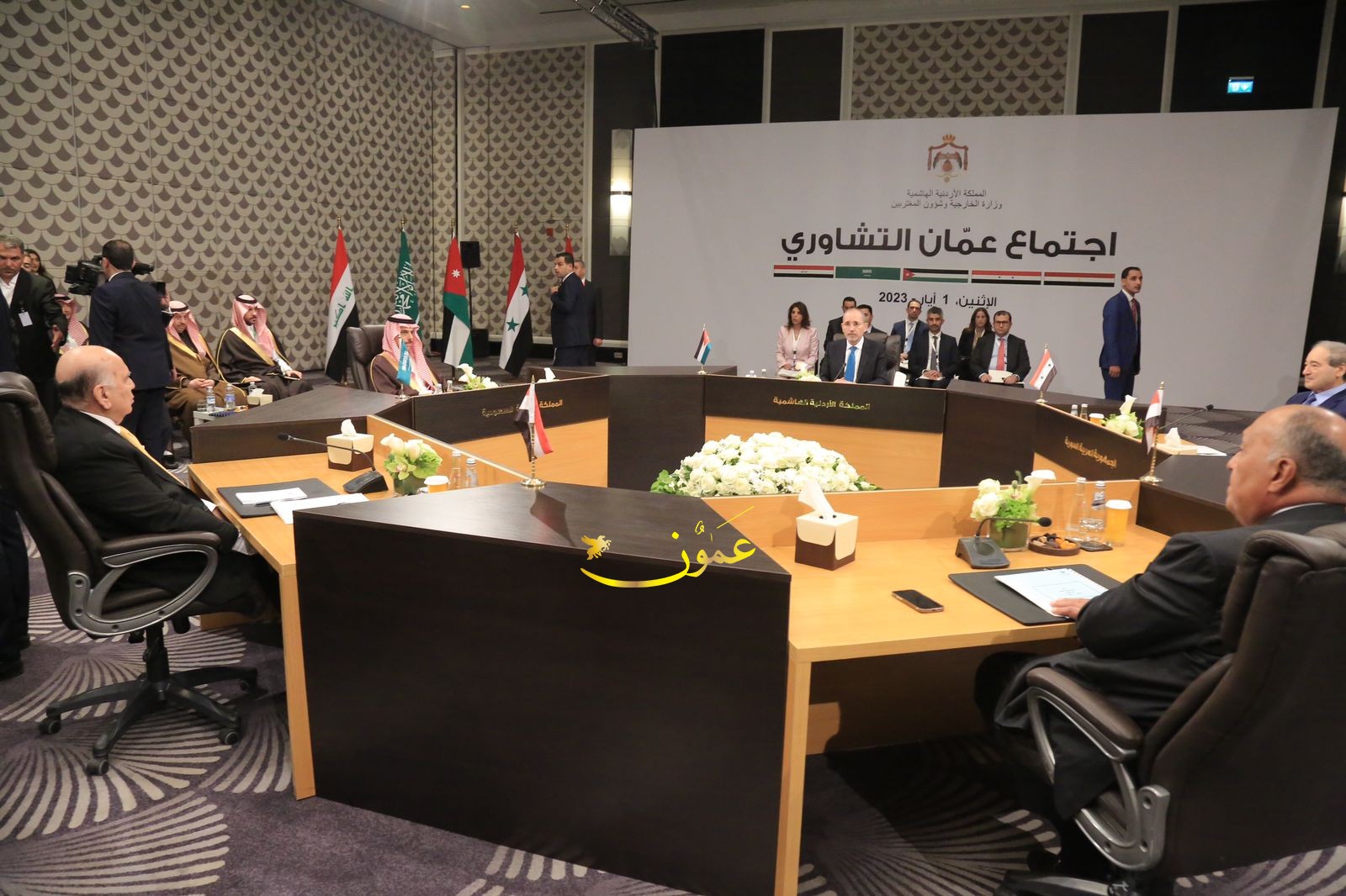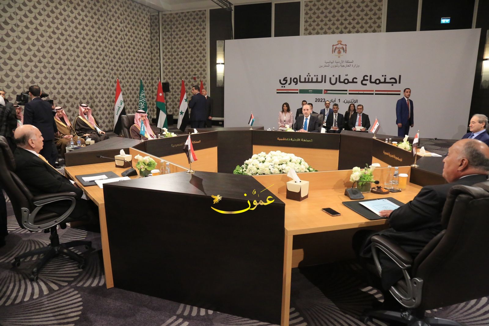 عمون - انطلقت في العاصمة عمّان الاثنين، أعمال الاجتماع التشاوري لوزراء خارجية الأردن والسعودية والعراق ومصر وسوريا، بهدف البناء على اتصالات عربية مع الحكومة السورية وفي سياق طروحاتها، والمبادرة الأردنية للتوصل لحل سياسي للأزمة السورية.