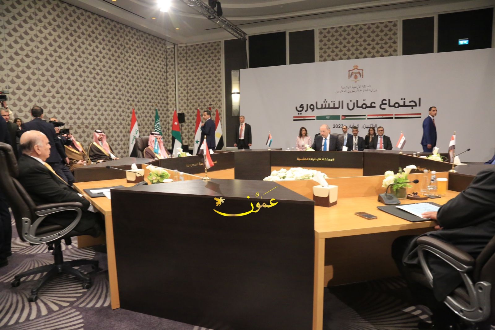 ووصل إلى مكان انعقاد الاجتماع في عمّان، وزير الخارجية السوري فيصل المقداد، ووزير الخارجية العراقي فؤاد حسين، ووزير الخارجية المصري سامح شكري، ووزير الخارجية السعودي الأمير فيصل بن فرحان.