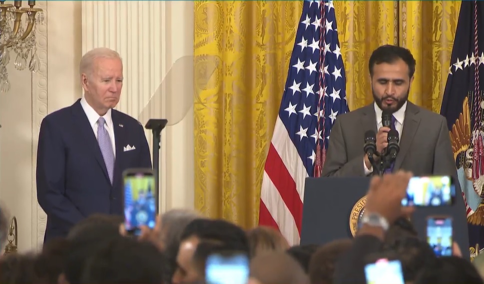 واستمع بايدن خلال الحفل إلى تلاوة القرآن الكريم داخل إحدى قاعات البيت الأبيض، وأنشودة "طلع البدر علينا الشهيرة"، مهنئاً المسلمين بعيد الفطر ومشدداً على أهمية إيضاح صورة أنّ المسلمين الأمريكيين جزء من النسيج الأمريكي الذي يعمل على رفعة البلاد.