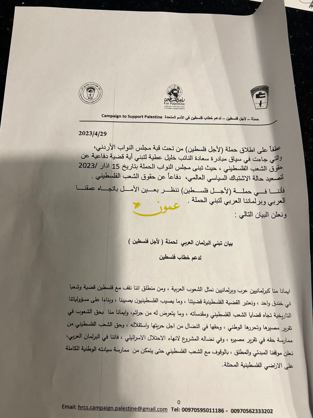 كما نعلن عن تبنينا لخطاب فلسطين الذي أوردته حملة ( لاجل فلسطين ) والتي عبر عنها الرئيس الفلسطيني امام الجمعية العامة للأمم المتحدة في الدورة 77.
