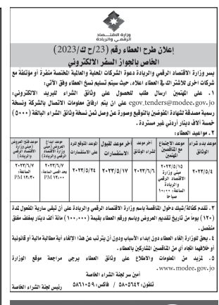 عطاء صادر عن وزارة الاقتصاد الرقمي والريادة
