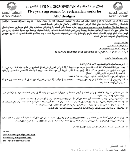 عطاءات صادرة عن شركة البوتاس العربية