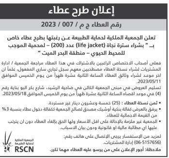 عطاء صادر عن الجمعية الملكية لحماية الطبيعة