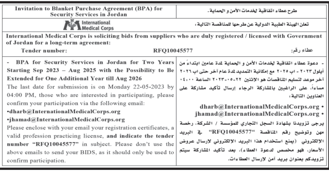 مطلوب تقديم خدمات الامن والحماية للهيئة الطبية الدولية
