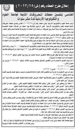 عطاء صادر عن جامعة العلوم والتكنولوجيا