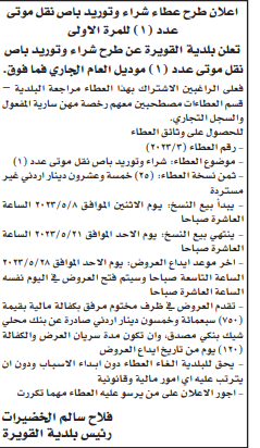 مطلوب شراء باص نقل موتى لبلدية القويرة