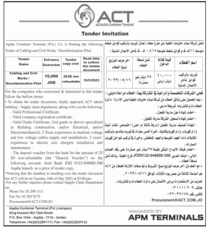 عطاء صادر عن شركة ميناء حاويات العقبة