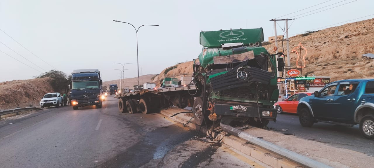 وقالت الاردارة بحسب التقرير المروري عبر اذاعة الامن العام الخميس، إن فقدان كوابح مركبة الشحن أثناء المسير وعدم تفقدها قبل الحركة.
